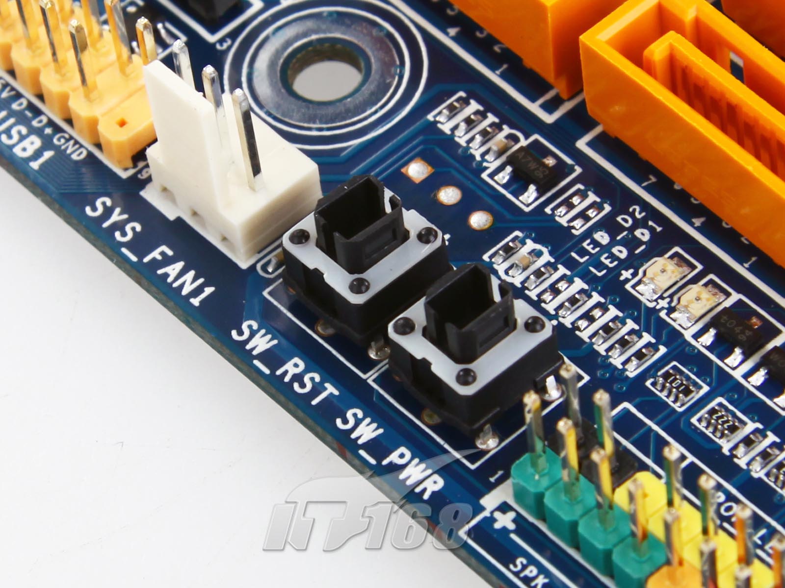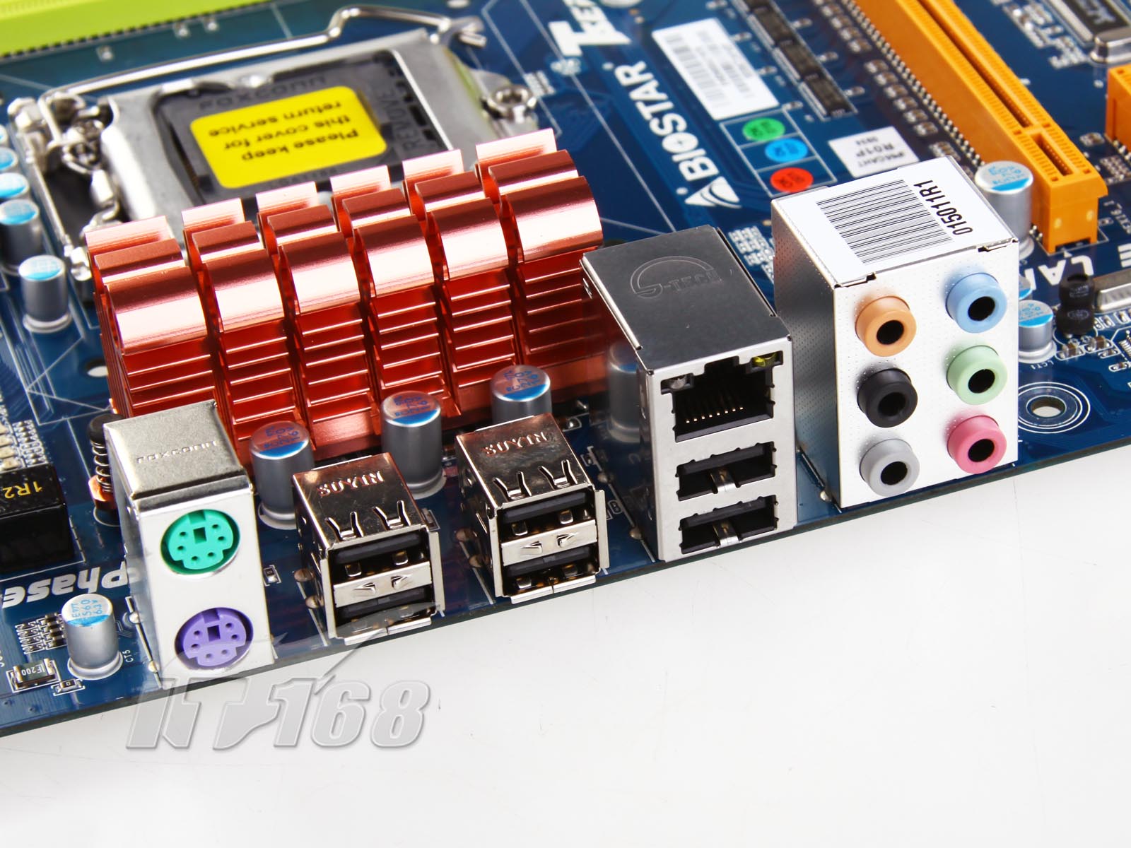 主板I/O接口部分较为简洁,除了提供了常用的PS/2键鼠接口以及6个USB接口之外,还板载了千兆网卡接口和8声道HD音频输出接口,相比较市售同类产品,这样的配备略显简陋,当然,这也是降低主板成本的无奈选择。