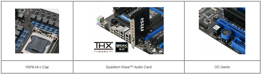 其他主要玩家特色:全高导电钽电容(100% Hi-c Cap)、一键超频精灵(OC Genie)、超导热管散热(SuperPipe)、外接式超頻面板(OC Dash Board)、电压万用表检测端口(V-kit)。微星表示,Big Bang Trinergy主板将在2009年底正式对外发布。
