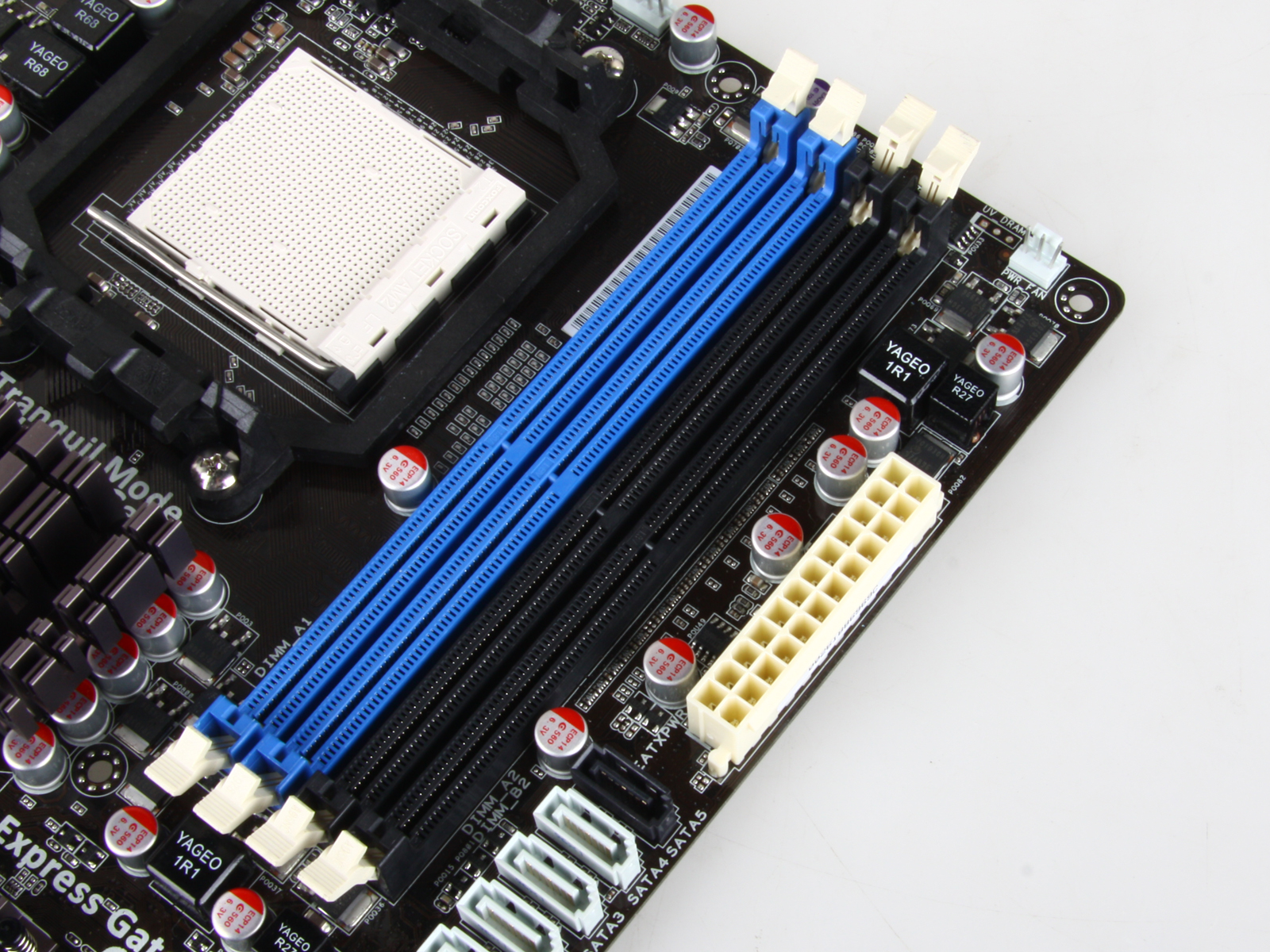内存插槽部分,提供了4条DDR2内存插槽,支持双通道DDR2 1200(OC)/1066/800内存,最大支持16GB容量。