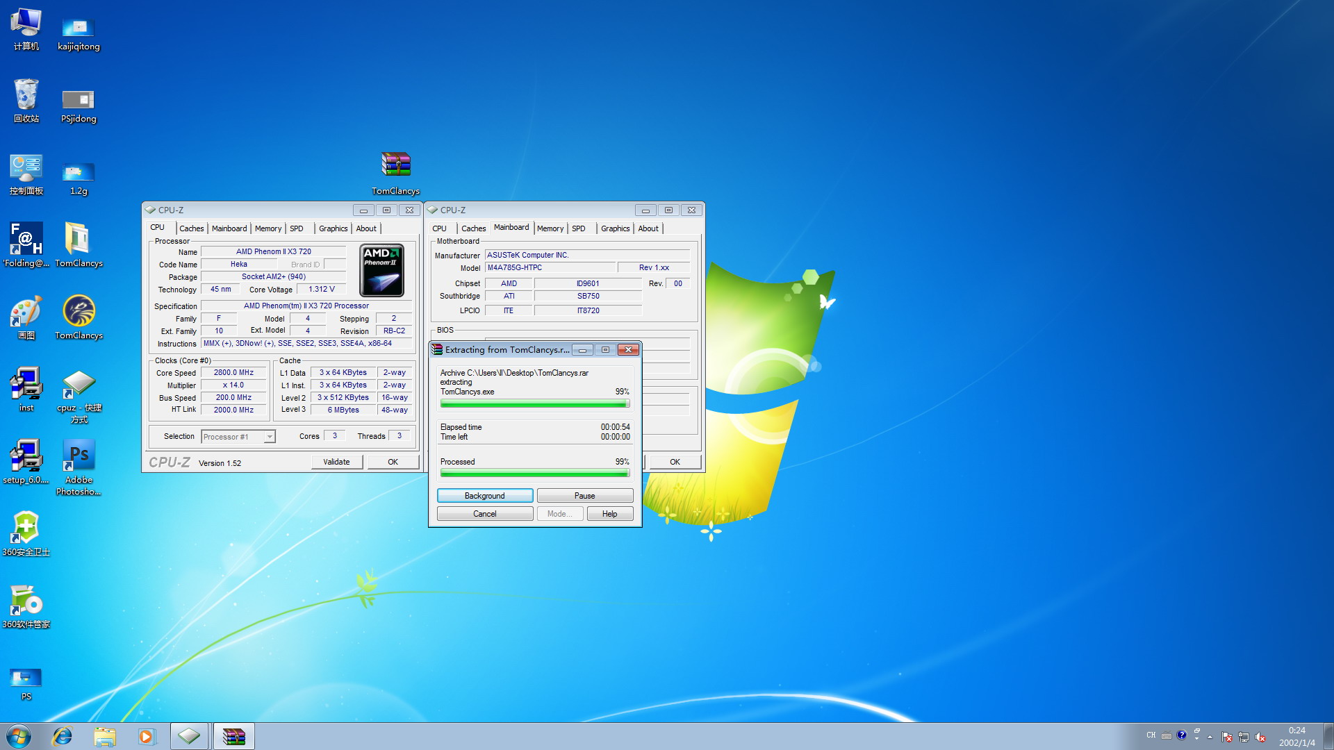 通过测试我们发现,华硕M4A785G-HTPC/RC主板搭配SSD固态硬盘在win7系统下启动CS4的时间仅为7秒钟。值得一提的是,在启动CS4与开始计时之间有一个时间差,误差在30毫秒之内。最后,我们再来看看该系统下,解压文件的速度如何: