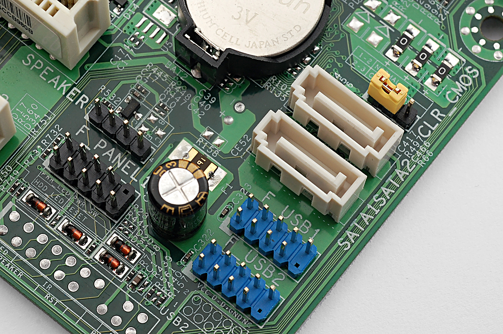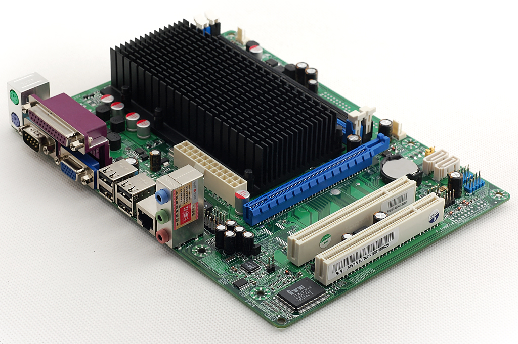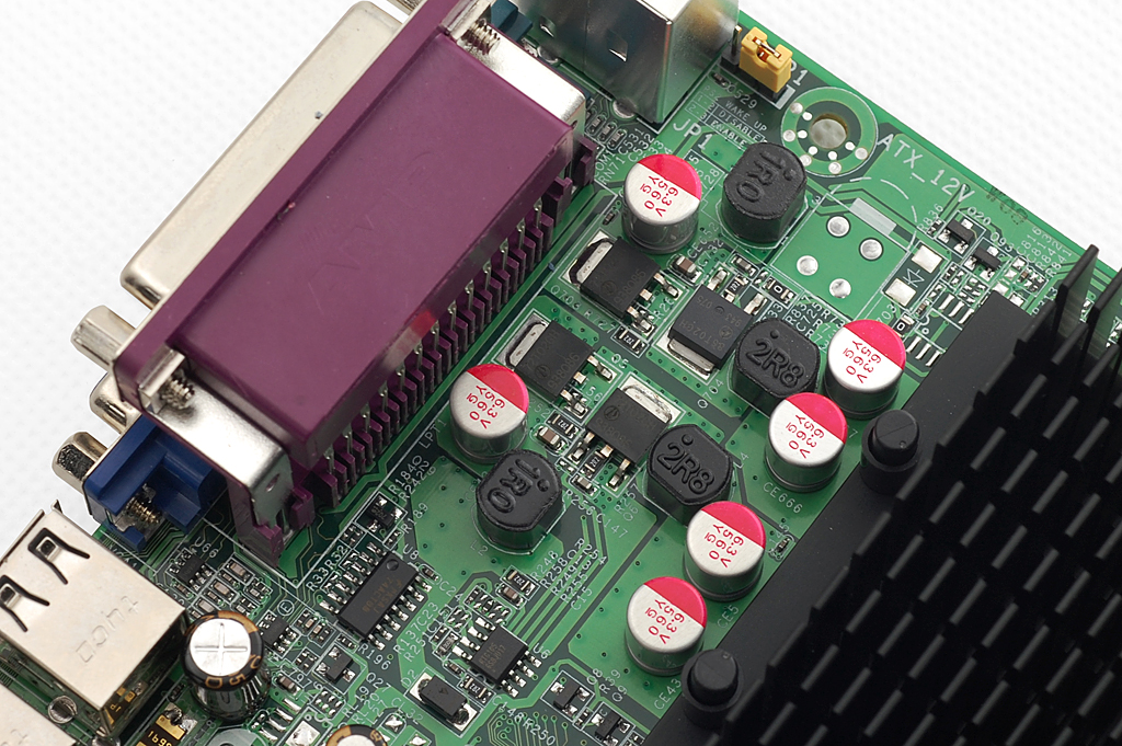 I/O接口部分,除了常见的PS/2键盘、鼠标接口外,七彩虹 C.D41T还提供了VGA视频输出接口,RJ45网卡接口,COM口以及打印机接口等。