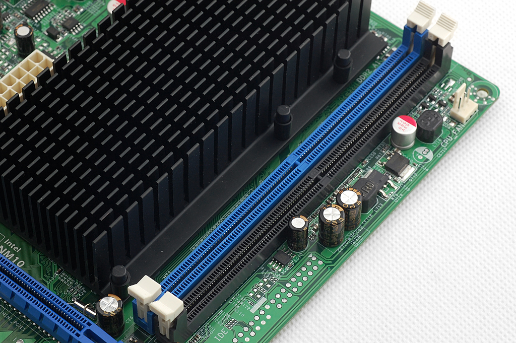 供电部分,七彩虹 C.D41T的供电单元仅采用了两相供电,不过这已经足够了,因为我们知道N450处理器的热设计功耗不过7W,NM10单芯片也不过5W左右。