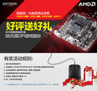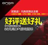 6月18号昂达在京东上架四款FM2+ CPU主板:昂达A88XU+魔固、A78U+魔固、A78S+全固、A58V+,于今日开始:好评即送礼包活动,收到产品后好评并提供单号即可获赠高DPI游戏鼠标一个。