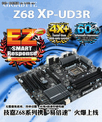 技嘉在Z68诞生之初就开始策划了一款能够便捷开启智能响应技术的软件。终于经过几个月的研发这款名为EZ SMART Response的软件与玩家见面了,利用这款软件玩家将不需要再重装系统,也不用BIOS设置,就能够轻松开启智能相应技术,享受四倍速的磁盘性能体验!最近编辑部收到了这块型号为Z68XP-UD3R的主板