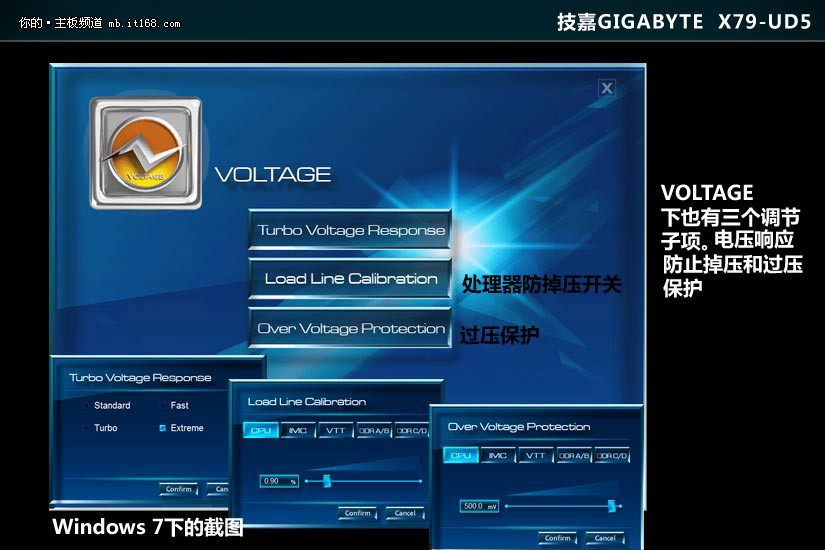 3D Power功能介绍:电压控制:包括了CPU、IMC(内存控制器)、VTT、DDR A/B、DDR C/D电压的调节。
