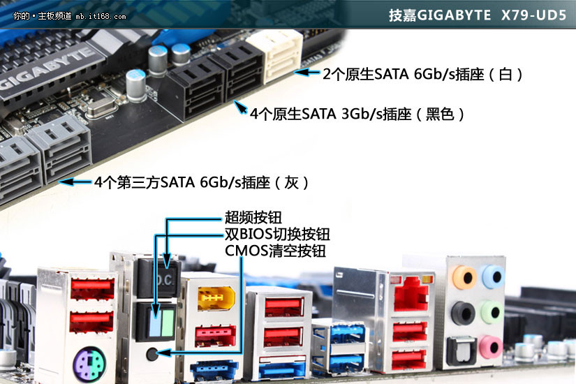 X79芯片组作为顶级桌面平台的象征,超频能力自然受到大家的关注,技嘉X79-UD5将供电相数提高到了14相,并且为了超频方便,在后背板加入了双BIOS切换,复位BIOS和超频按钮配合全新的3D供电技术与3D BIOS到底能超的什么程度请看下面的测试。