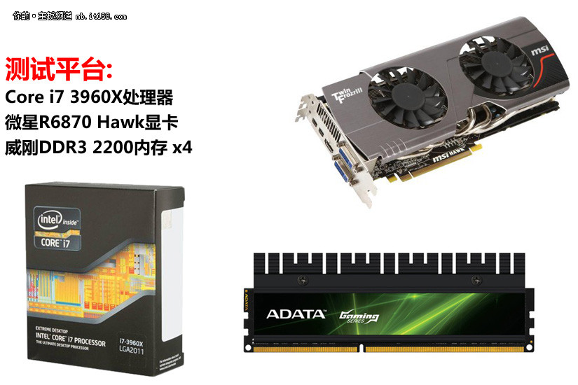 测试平台:Core i7 3960X处理器、微星R6870 Hawk显卡、威刚DDR3 2200内存 x4